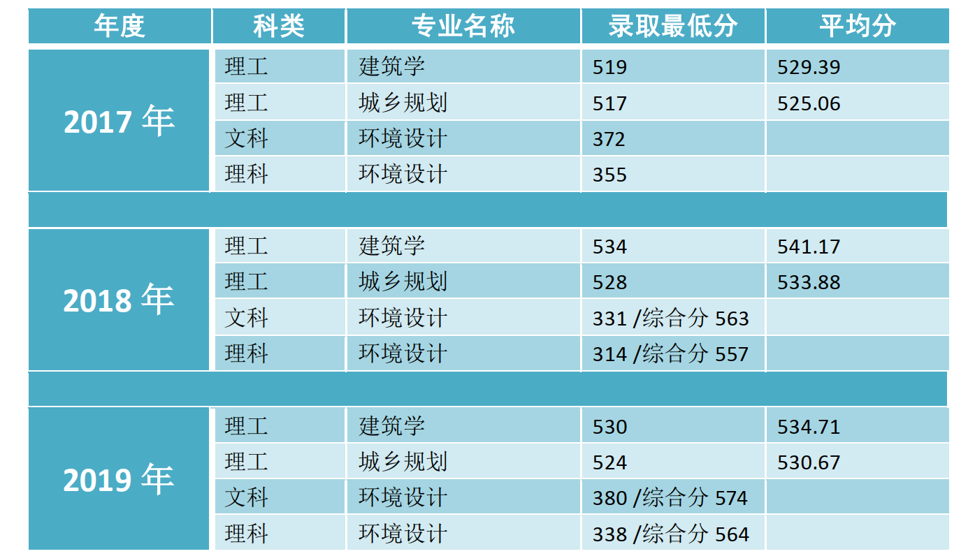建筑学、城乡规划、环境设计专业普通批首次志愿录取情况(2017-2019年)