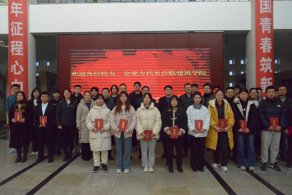 12月30日,建筑学院2020-2021学年院级奖学金颁发仪式在建筑馆一楼会议室成功举办。奖学金设立方代表九三级校友建筑学院建筑系主任张巍、烟台迈梵实商贸有限公司创始人耿明辉、烟台瑞冠建筑装饰有限公司创始人于傅龙、山东印象规划建筑设计有限公司创始人于雷、山东帝阁门业有限公司总经理陈振汉、烟台帝阁建材有限公司总经理阎昌盛应邀出席。