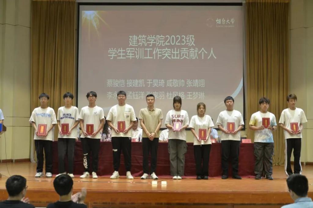 在建筑学院2023级学生军训表彰大会中,学院领导和老师对军训内务优胜宿舍、军训标兵、军训优秀学员、新生优秀导助、军训工作突出贡献个人颁奖。