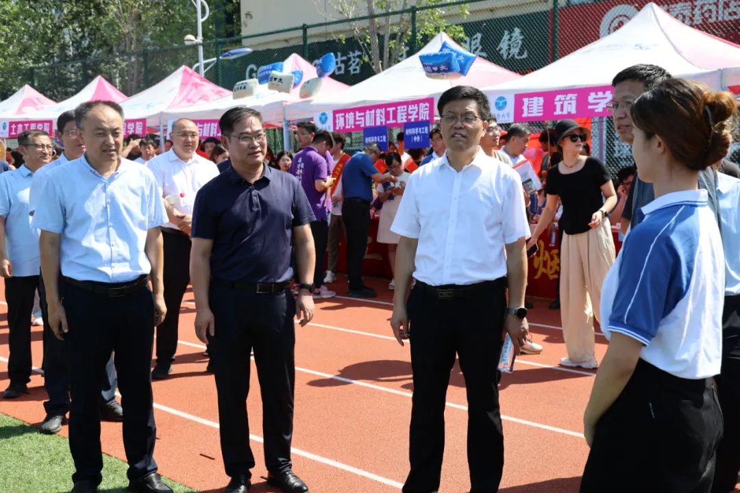 31日上午,学校领导卢国强、冯素玲、姚昌、初磊来到建筑学院新生报到现场,检查指导迎新工作,了解新生报到情况。“我们在迎新现场设立科创成果展区,精选第十八届‘挑战杯’国赛特等奖项目成果进行展示,新生可以在展区内领略专业特色和科创风采,感受建筑学院的优良学风和浓厚的科创氛围。”学校领导听取了建筑学院的迎新亮点工作、为新生准备的文创礼物和建筑学院第十八届“挑战杯”国赛特等奖项目成果的科创展区等迎新内容。