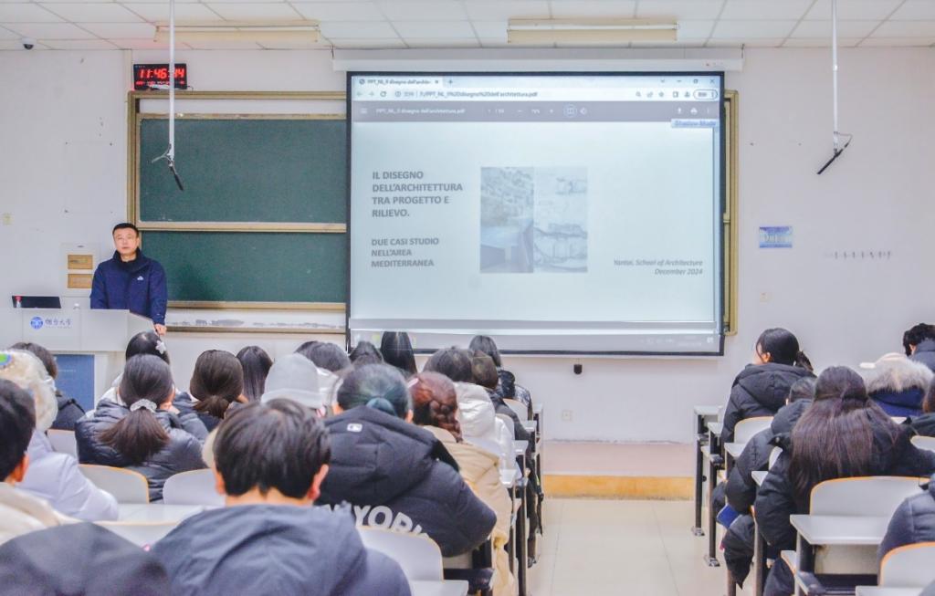 为进一步加强烟台大学中意合作办学项目的学术交流,丰富学生的专业认知,12月18日,建筑学院特邀请意大利教师诺韦拉·莱奇进行题为“建筑设计中的绘图:项目与测绘之间的平衡——地中海地区的两个案例研究"的学术讲座。本次讲座由建筑学院院长助理、中意合作办学教学部王磊副教授主持。