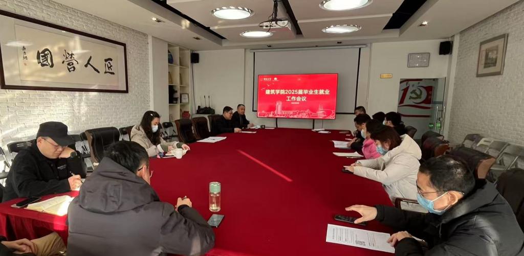 为贯彻落实教育部关于高校毕业生就业工作的决策部署及学校2025届毕业生就业工作会议精神,1月7日,建筑学院召开2025届毕业生就业推进会,学院党政领导、系部主任、专业负责人、毕业班导师、辅导员老师参加会议。