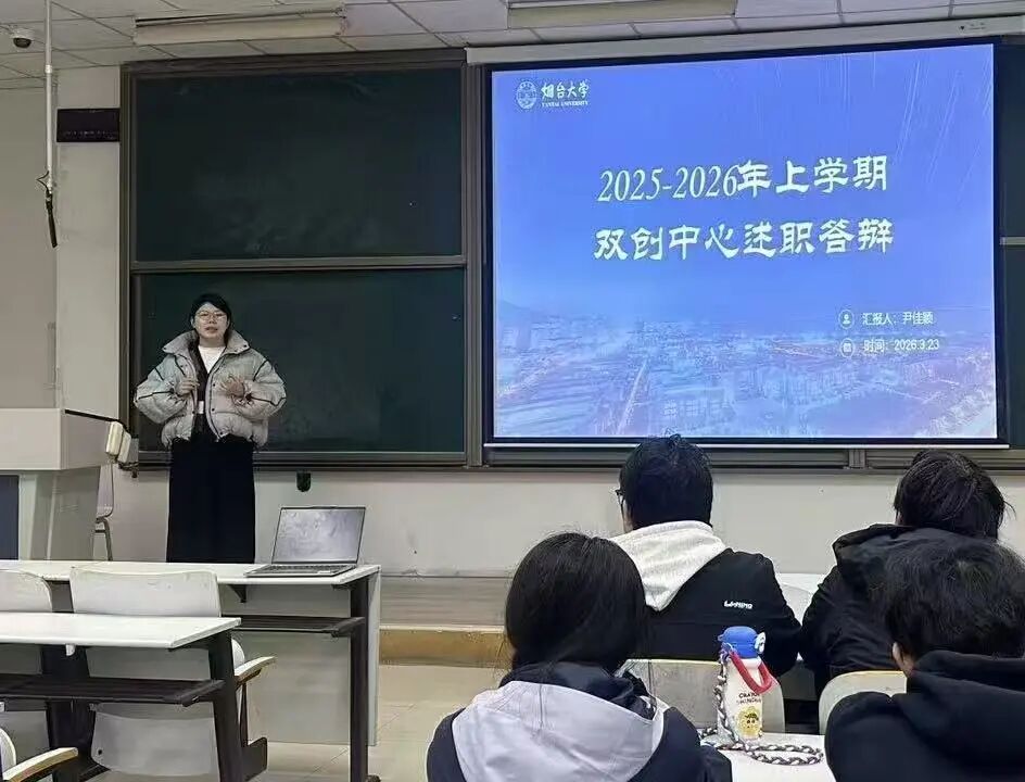 双创中心主任尹佳颖主持,指导老师邢慧双参加,中心各部门负责人依次进行述职汇报。各部门紧扣工作实际,从日常管理、项目孵化、赛事组织、服务保障等核心板块,系统复盘上学期工作开展情况,梳理成果亮点,剖析问题不足,并结合新学期发展目标明确工作方向。