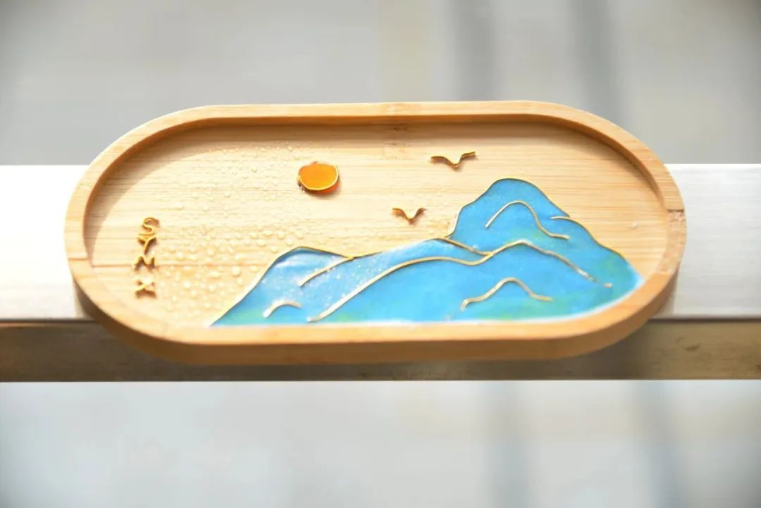 绘画、上胶、掐丝、剪丝、着色,用金丝细细勾勒出轮廓,用釉料逐步填充色彩。看似普通的金丝,在一番弯折处理后,构成一个个精巧细致的图案。捋丝、沾丝、点蓝填砂、淋膜,一幅幅掐丝珐琅画,在老师们指尖的流转间,逐渐显现各种美丽的样貌。