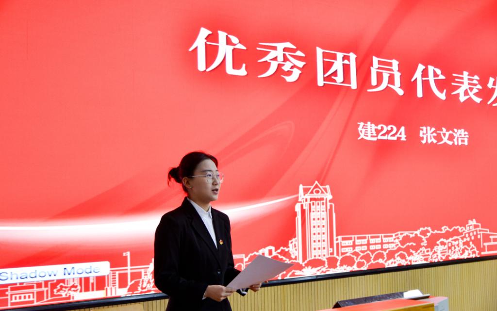 尹长浩同学代表全体新发展团员向团组织表达心声:要以信仰之名,许下青春誓言,以更加饱满的热情,更加坚定的信念,响应时代号召,为实现中华民族伟大复兴的中国梦贡献青春力量!