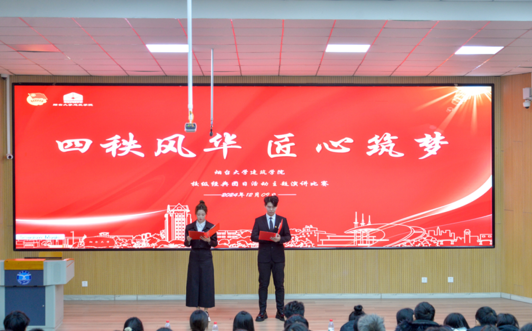 为庆祝中华人民共和国成立75周年、烟台大学建筑学院建院40周年,12月9日,建筑学院校经典团日活动“四秩风华,匠心筑梦”主题演讲比赛决赛在二教104顺利举行,建筑学院团委书记徐小惠老师、辅导员李万军老师、侯玉涵老师,学院师生代表200余人参加。