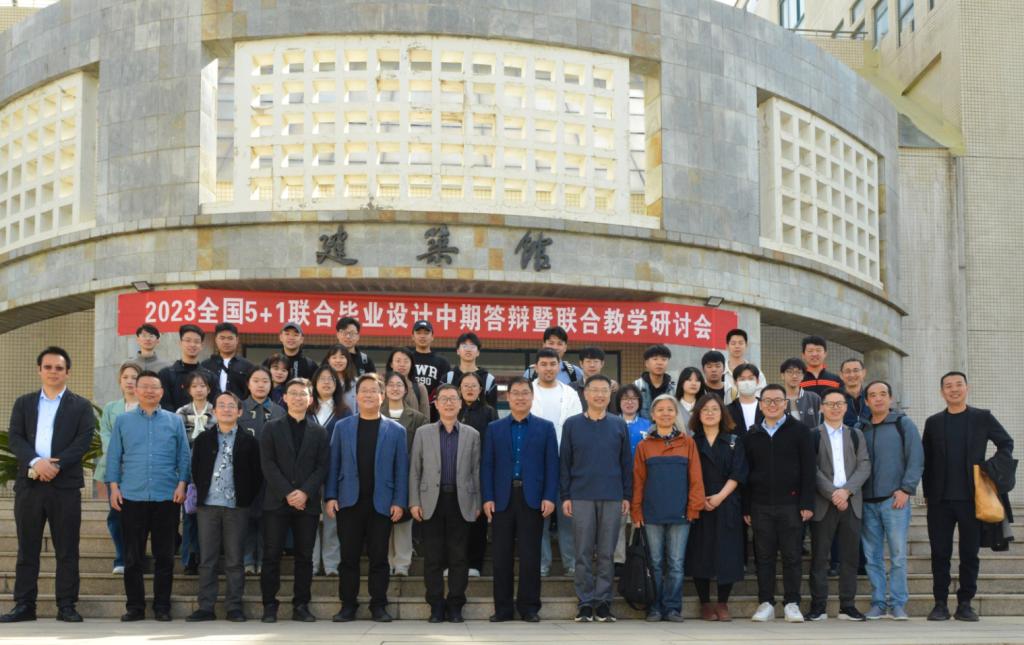 2023年4月15日,全国5+1联合毕业设计《老河口 新未来-天津三岔河口文化中心设计》中期答辩及联合教学研讨会活动在烟台大学建筑学院成功举办。本次活动邀请了天津城建大学、安徽建筑大学、浙江工业大学和福建工程学院及本校师生50余人共同参加。