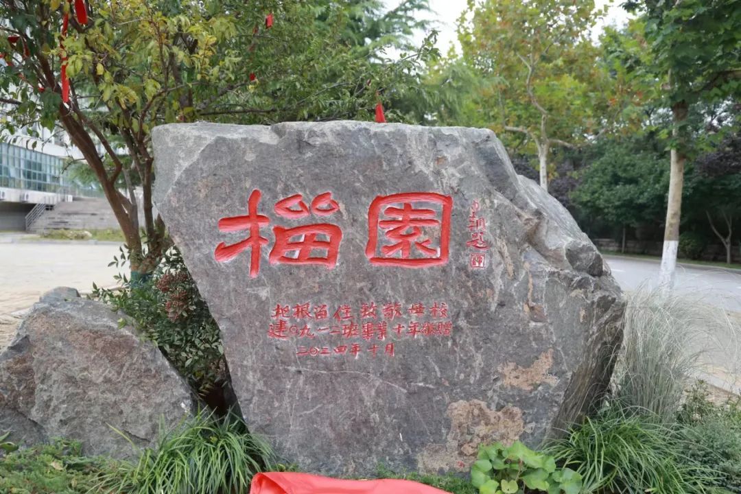 校友们捐赠的石榴树和“山西黑”造型景观石,置于建筑馆南校友林,石榴树旁偎依着“榴园”勒石,寄寓“时光筑梦、把根留住”。捐赠仪式上,隋杰礼表示,校友捐赠不仅是向母校奉献的一份礼物,更是校友们对母校深深情感的寄托。陆代刚、马群在发言中,对校友表示热烈欢迎,对校友们慷慨捐赠表示感谢,借着石榴“籽籽同心、多子多福”的美好寓意,畅想未来并祝福学校、学院蓬勃发展,希望校友们不忘初心、凝心聚力、知行合一、共同进步。参加捐赠仪式的全体师生在石榴树下、榴园石侧合影留念,并为烟台大学建校40周年献上了祝福,共祝母校、学院再创辉煌。