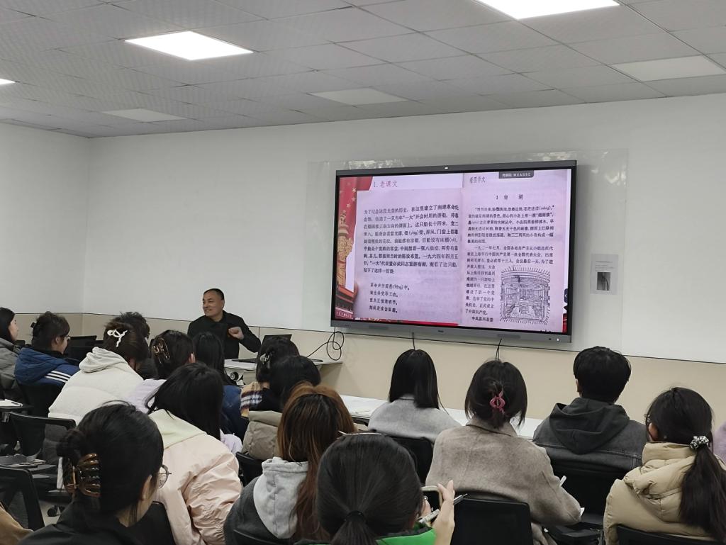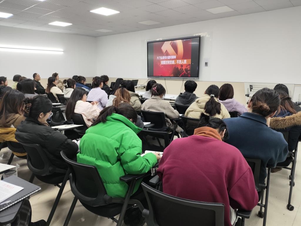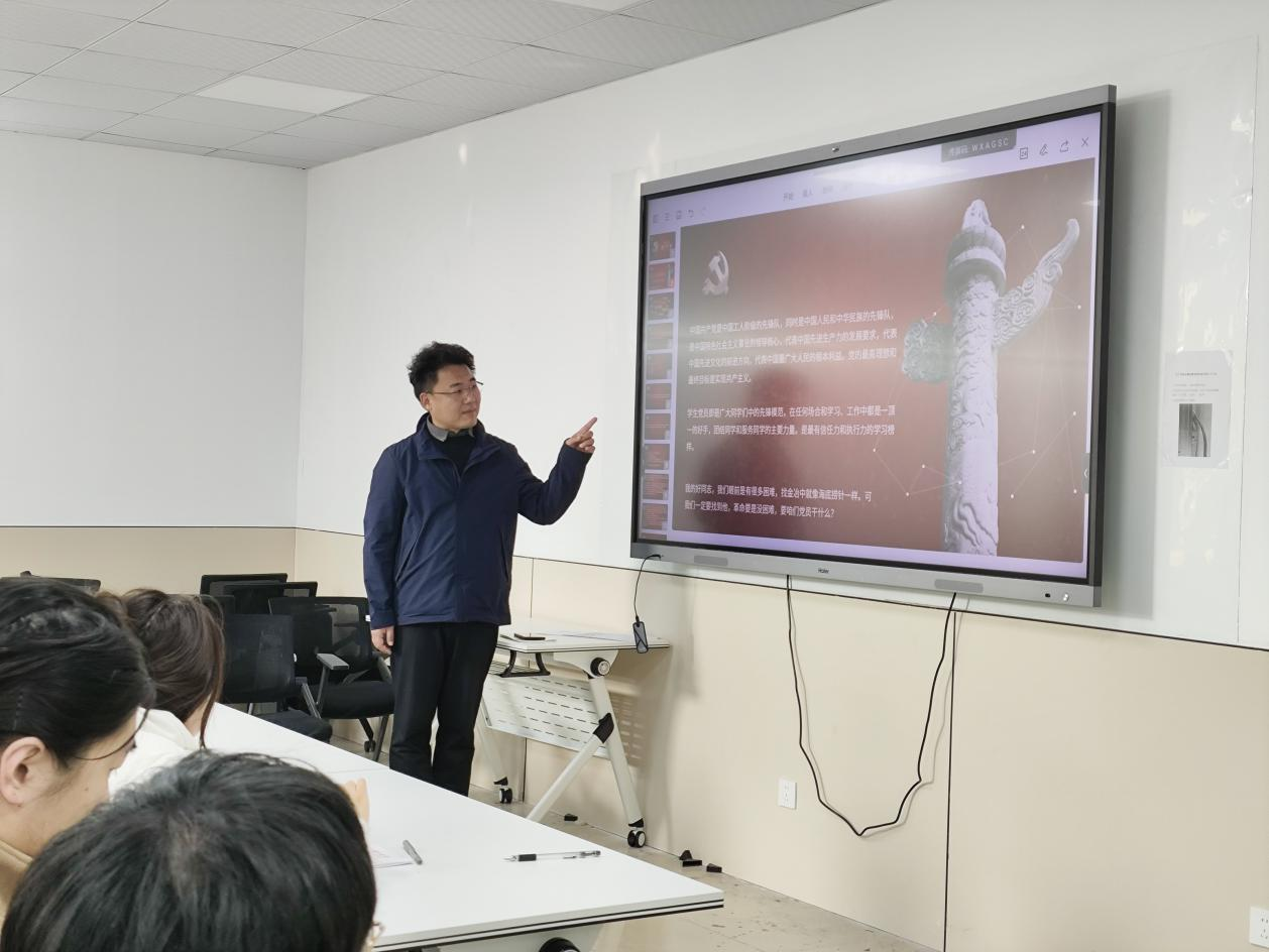 “革命声传画舫中,初心如磐永向党。”党总支书记马群老师从老一辈无产阶级革命家、中共一大代表董必武同志《南湖题诗》切入,引导同学们要深入理解和感悟“坚持真理、坚守理想,践行初心、担当使命,不怕牺牲、英勇斗争,对党忠诚、不负人民”伟大建党精神的深刻内涵,自觉传承红色基因,将个人理想融入国家发展,以青春力量服务中国式现代化建设,在实现中华民族伟大复兴的征程中书写无愧于时代的壮丽篇章。