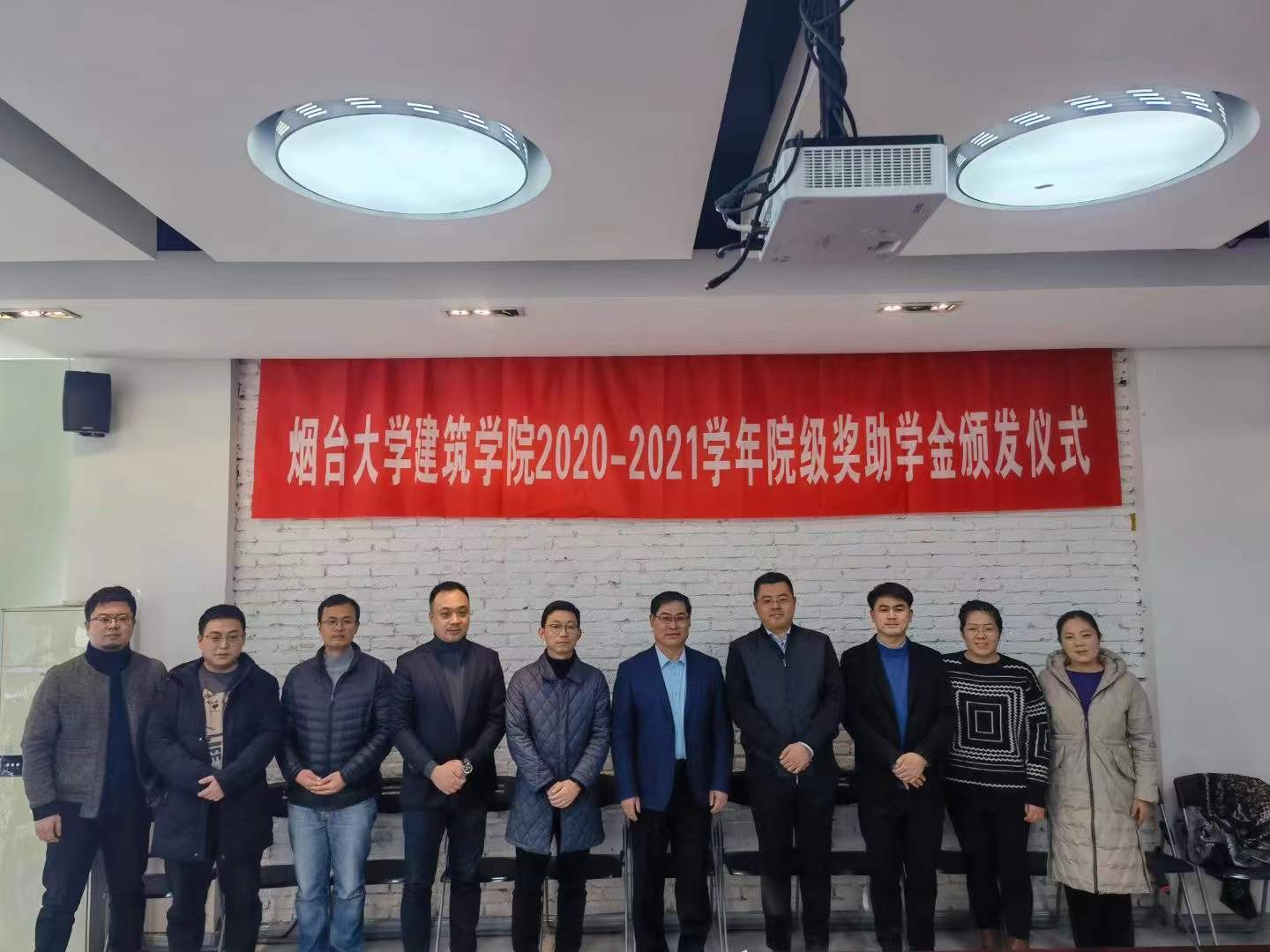 12月30日,建筑学院2020-2021学年院级奖学金颁发仪式在建筑馆一楼会议室成功举办。奖学金设立方代表九三级校友建筑学院建筑系主任张巍、烟台迈梵实商贸有限公司创始人耿明辉、烟台瑞冠建筑装饰有限公司创始人于傅龙、山东印象规划建筑设计有限公司创始人于雷、山东帝阁门业有限公司总经理陈振汉、烟台帝阁建材有限公司总经理阎昌盛应邀出席。