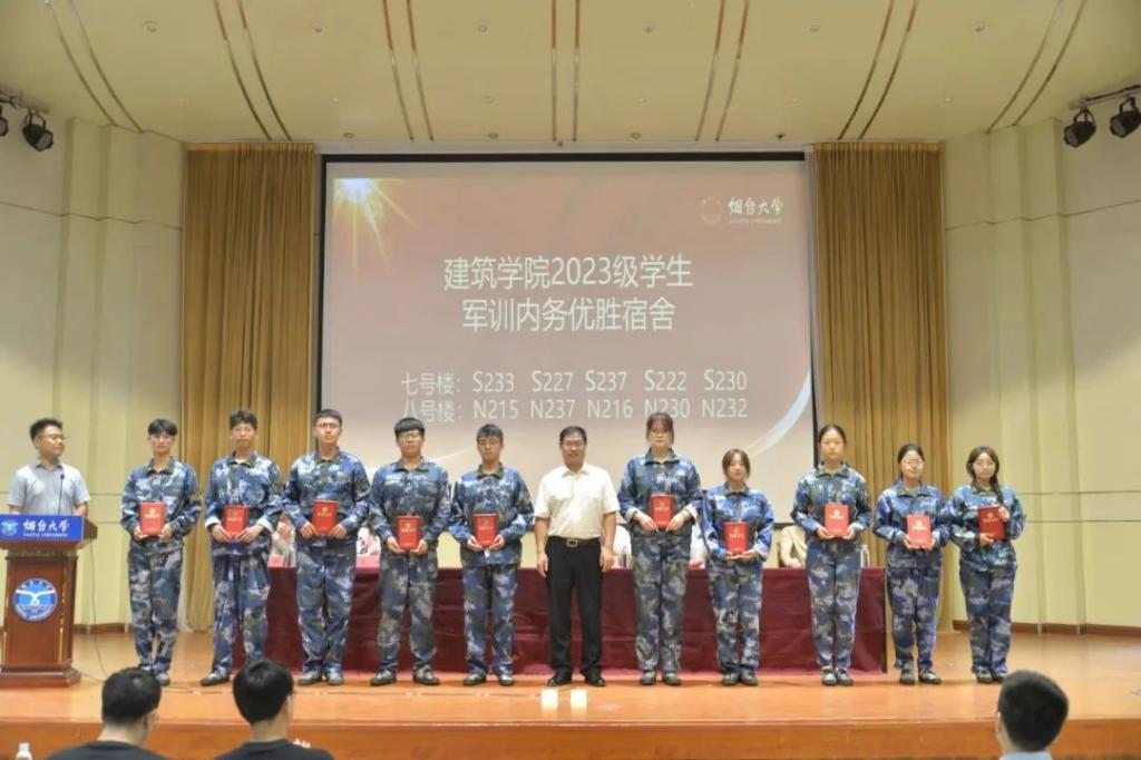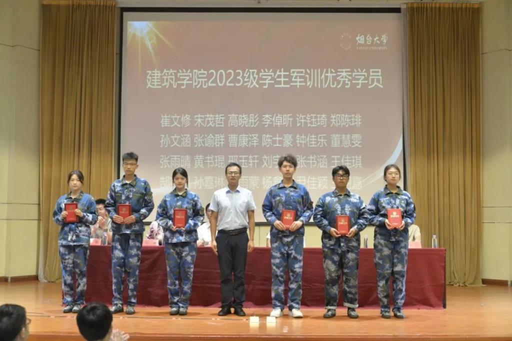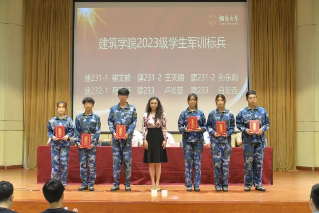 在建筑学院2023级学生军训表彰大会中,学院领导和老师对军训内务优胜宿舍、军训标兵、军训优秀学员、新生优秀导助、军训工作突出贡献个人颁奖。