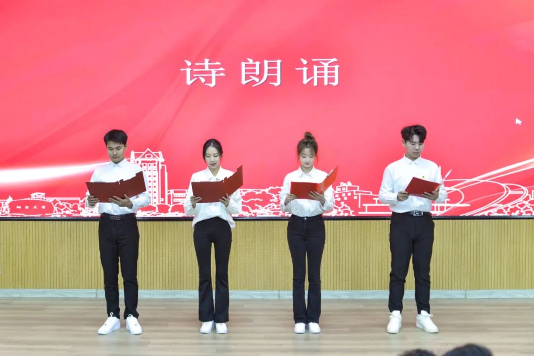 建筑学子宫嘉琦、李潼、郑陈琲、郝子萱以诗朗诵的形式回顾了烟园的四季风景,用声音讲述了历经四十载风雨征程,一代代建筑学院师生携手同行、砥砺奋进的征程,抒发出建筑学子“挺膺担当,强国有我”的青春誓言。