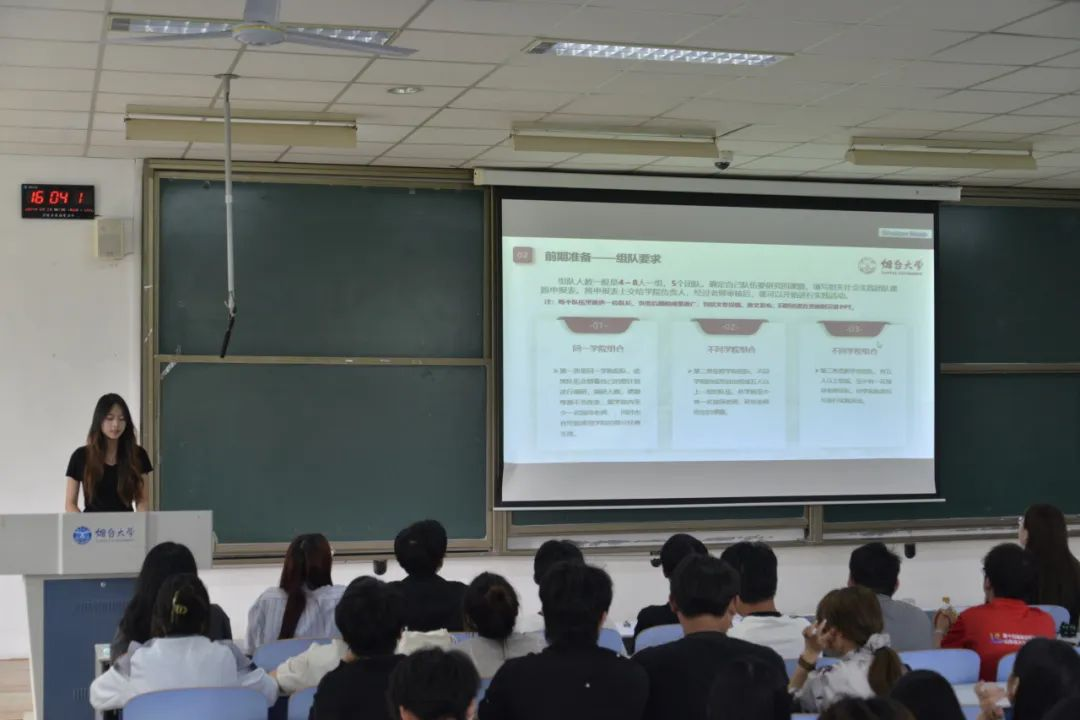 邢慧双老师依次从“社会实践的构成”“前期准备”“中期实践”“后期冲刺”四个方面向全体学生系统讲解了社会实践的相关内容,提出社会实践是大学生的必修课,要一步一步走,稳扎稳打地做,多关注实践日程表,进行实践规划。