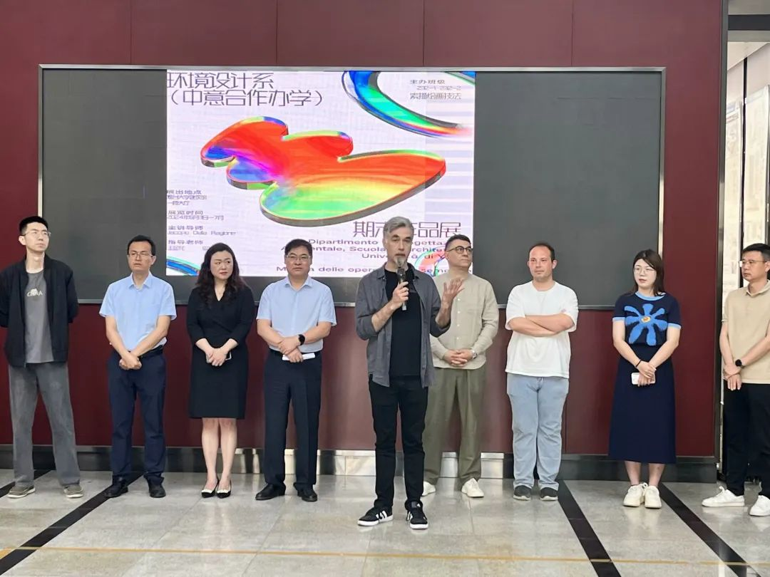 建筑学院院长隋杰礼在致辞中,高度肯定了参展作品的质量和同学们的辛勤付出,认为本次作业展充分展现了学院在师资力量、学生专业与文化素养、人文环境等方面大幅提升,希望通过合作交流产出更加丰硕的教学成果。随后,中方课程指导教师王金花和意方课程指导教师雅各伯分别讲话。